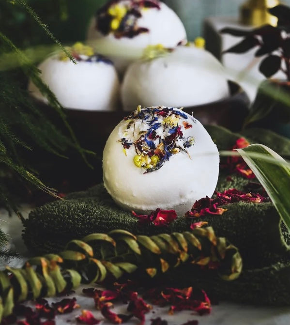 Handcrafted bath bombs sure to make you relax and unwind or be rejuvenated, all while nourishing the skin. Pk of 3 - 1 lg, 1 md,1 sm