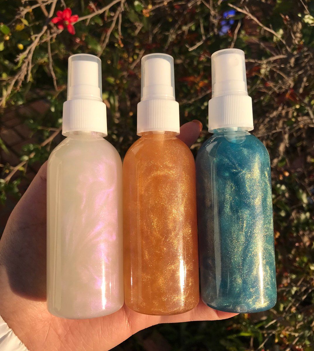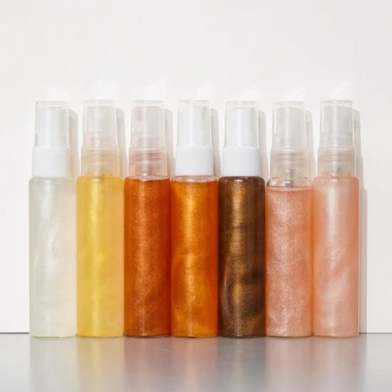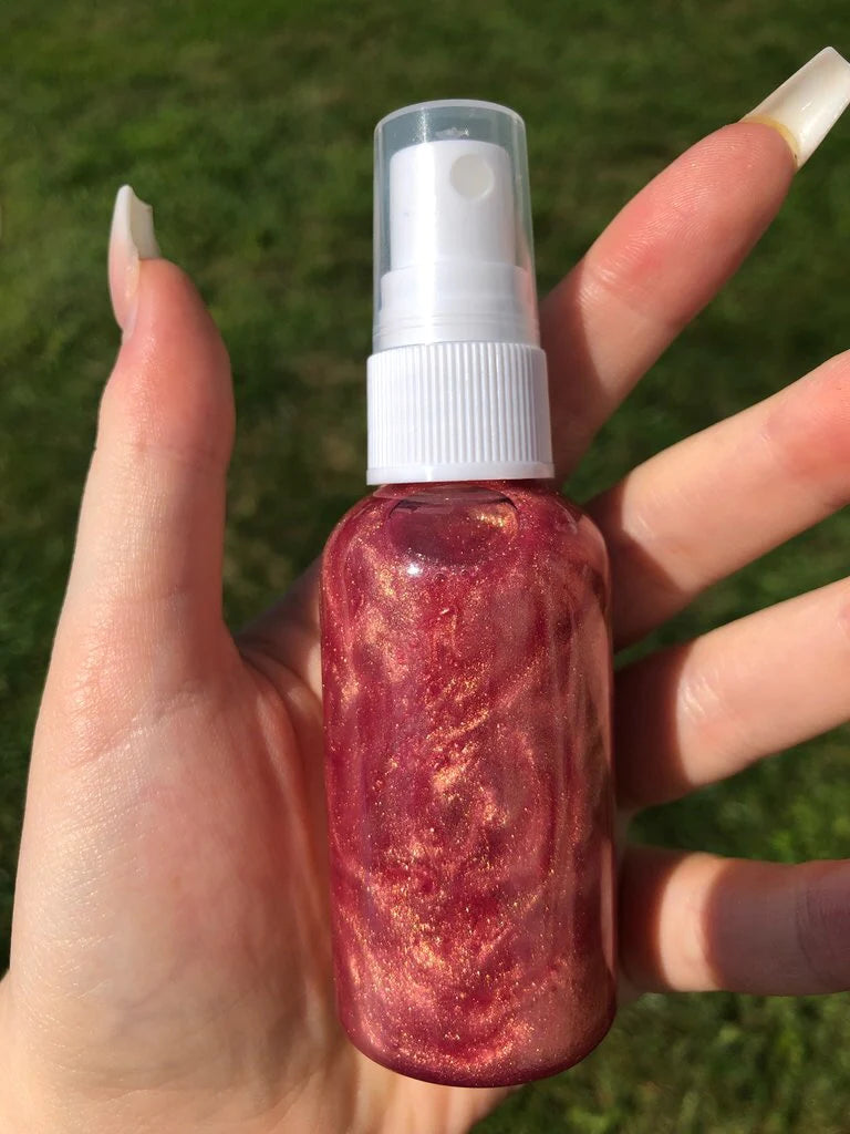 Scented Body spray with a glistening finish.